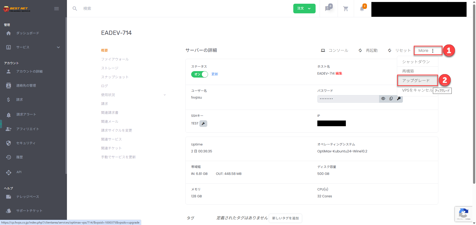 同等スペック間の延長ではサーバーの再起動は発生しません。