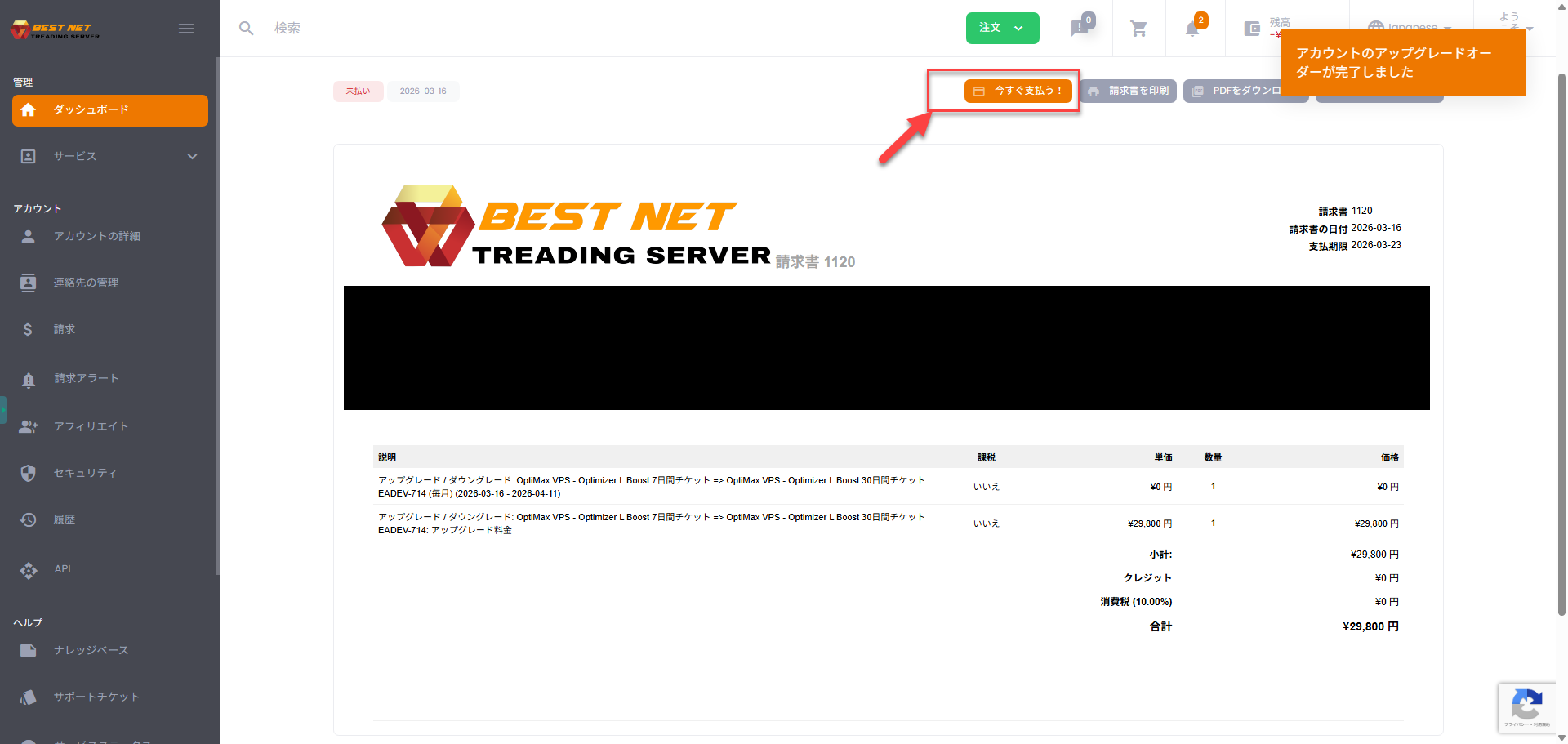 - 支払い完了後、自動でBoost チケットが自動で適用されます。